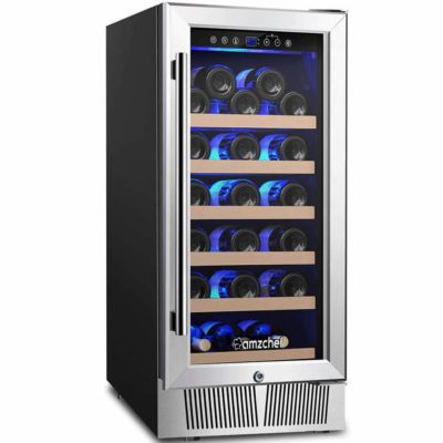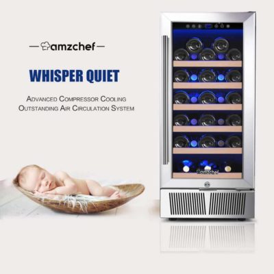 AMZCHEF 15″ Wine Cooler Refrigerator Built in or Freestanding Wine Cooler, Quiet, Constant Temperature & Energy Efficient